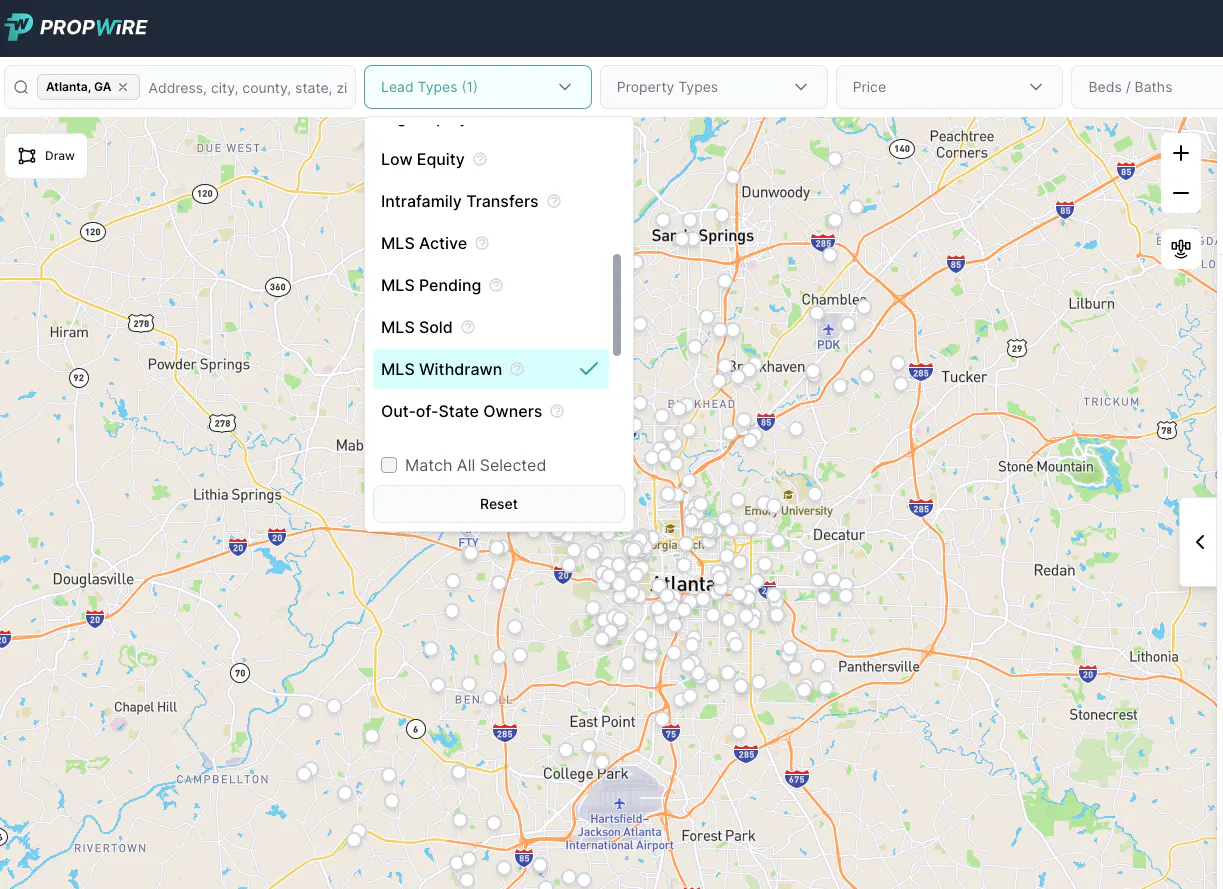By using Propwire’s up-to-date MLS data, you can find expired listings by simply filtering your search criteria.